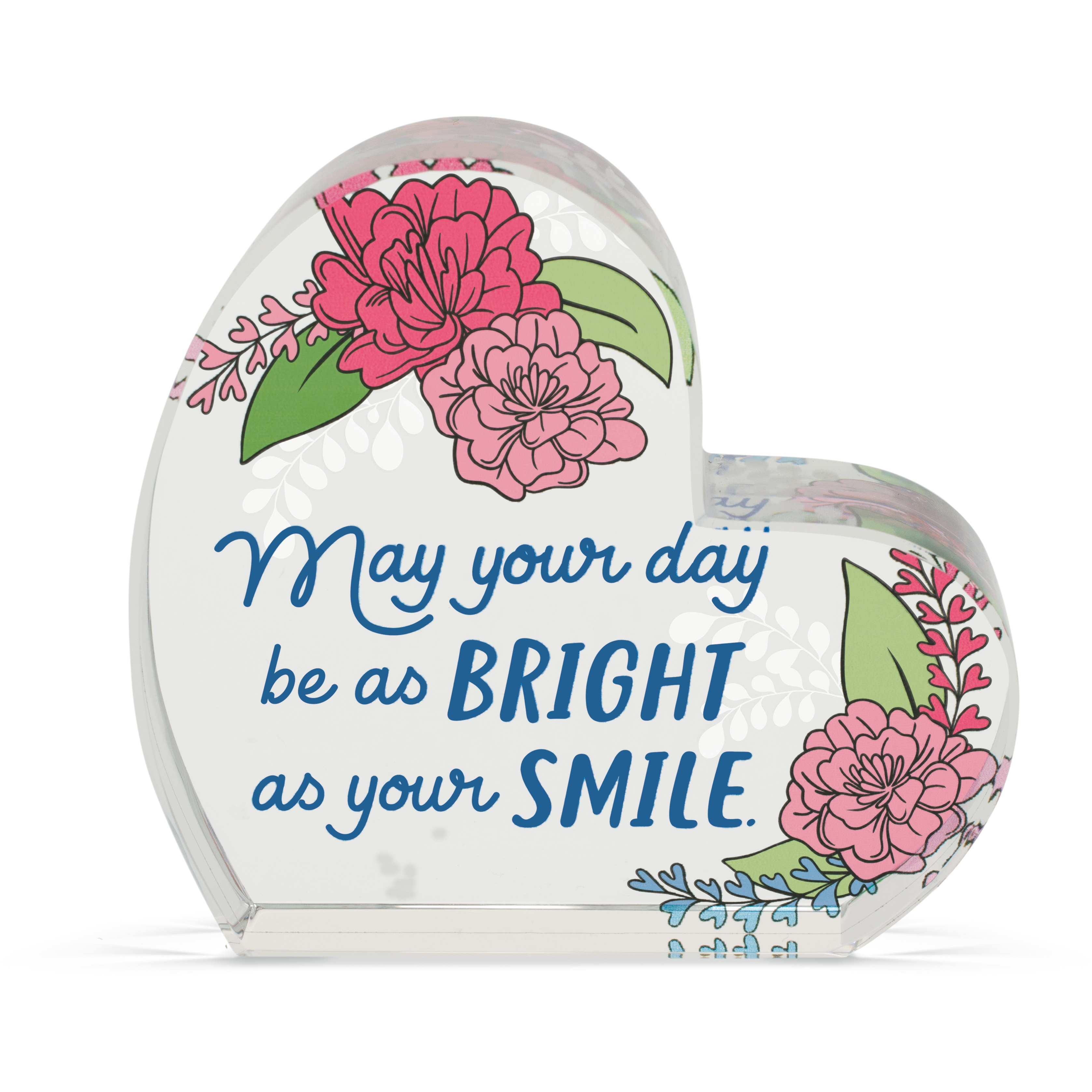 This Occasion Glass Plaque features colorful flowers and sentiments in the center of the heart. Laser-etched vines give this plaque unique depth.