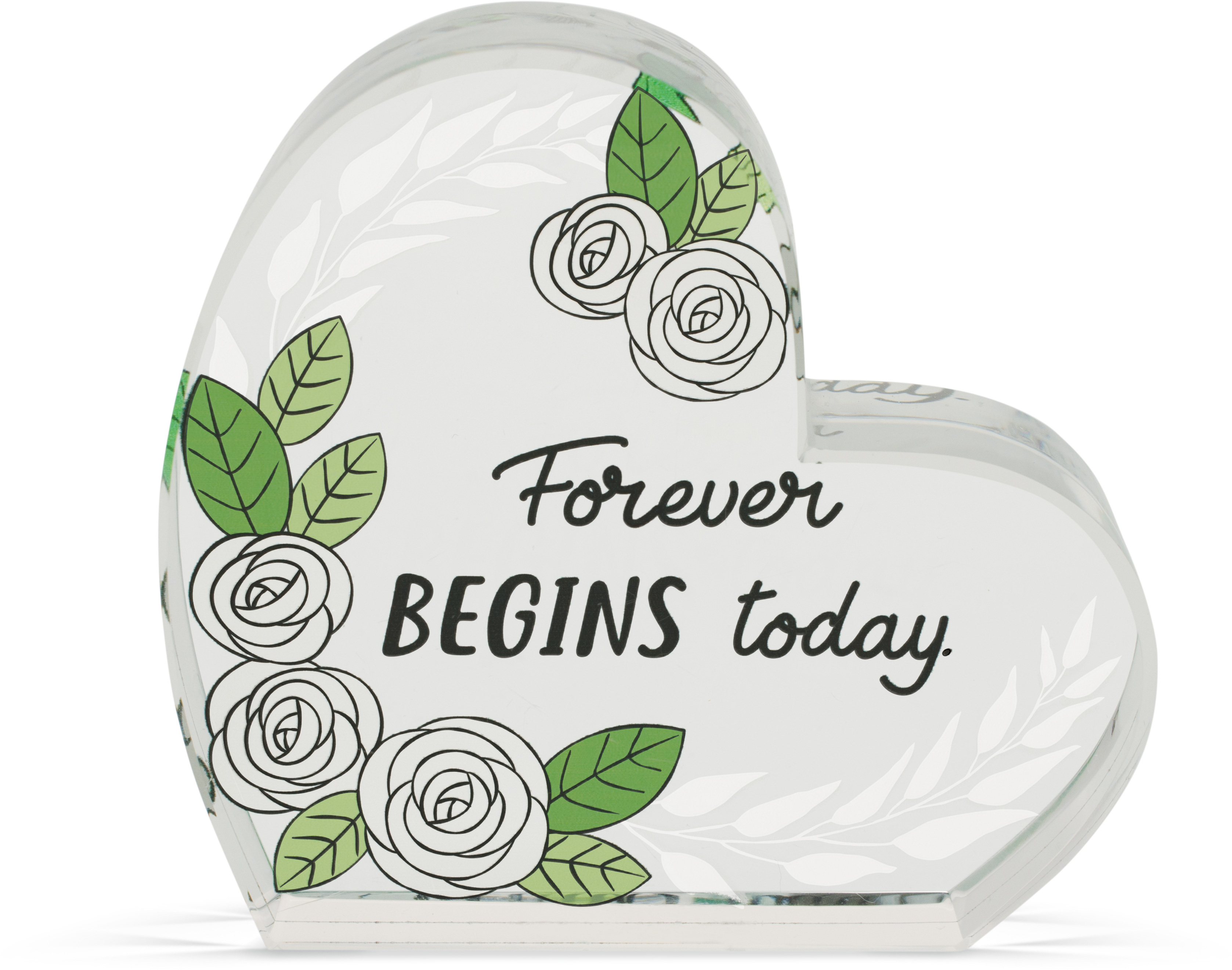 This Occasion Glass Plaque features colorful flowers and sentiments in the center of the heart. Laser-etched vines give this plaque unique depth.